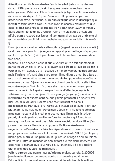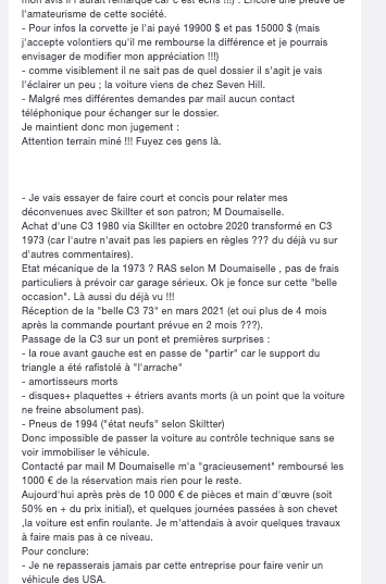 Depuis plus de 10 ans ils escroquent les clients, ça doit s’arrêter. N’hésitez pas à mettre des messages sur tout les forums et Trustpilot. Nous sommes aussi en relation avec la brigade financière contre ces imposteurs . Si vous voulez faire parti de la plainte française et américaine envoyez nous un e-mail à arnaque.importation.usa@gmail.com.